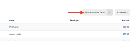 Look for a report or export feature, often named “Giving Report”, “Donation Export”, “Transaction History”, “Financial Transaction Report”, etc.